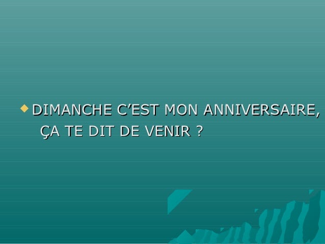 5. 5.  DIMANCHE C’EST MON ANNIVERSAIRE, ÇA TE DIT DE VENIR ?