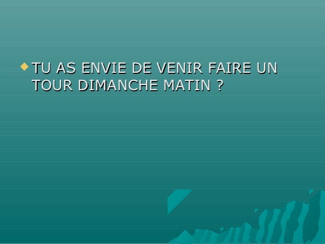 8. 8.  TU AS ENVIE DE VENIR FAIRE UN TOUR DIMANCHE MATIN ?