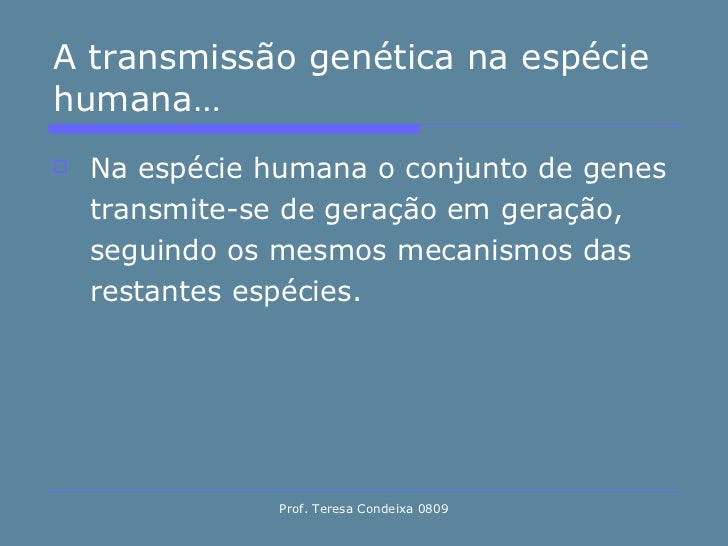 2. 2. A transmissão genética na espécie humana… <ul><li>Na espécie humana o conjunto de genes transmite-se de geração em geração, seguindo os mesmos mecanismos das restantes espécies. </li></ul>