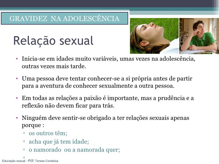 3. 3. GRAVIDEZ NA ADOLESCÊNCIA NAMORO / RELAÇÃO SEXUAL Educação sexual - Prof. Teresa Condeixa