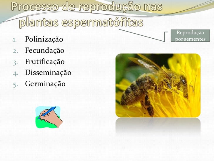 13. 13. Processo de reprodução nas plantas espermatófitas<br />Polinização<br />Fecundação<br />Frutificação<br />Disseminação<br />Germinação<br />Reprodução por sementes<br />