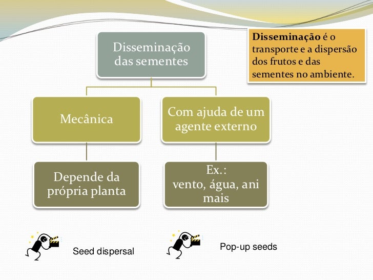30. 30. Disseminaçãoé o transporte e a dispersão dos frutos e das sementes no ambiente. <br />Pop-upseeds<br />Seeddispersal<br />