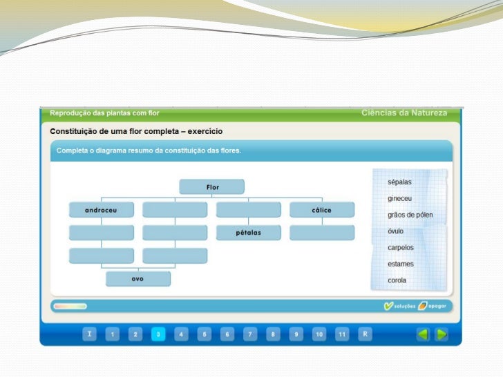 10. 10. Na antera do estame produz-se, em sacos polínicos, os grãos de pólen que dão origem às células reprodutoras masculinas.<br />No ovário do carpelo encontram-se os óvulos, onde se formam as células reprodutoras femininas<br />
