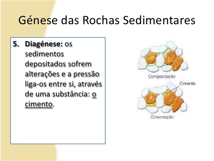 10. 10. Génese das Rochas Sedimentares<br />Diagénese: os sedimentos depositados sofrem alterações e a pressão liga-os entre si, através de uma substância: o cimento.<br />