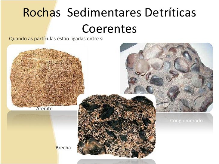 20. 20. Rochas Sedimentares Detríticas Coerentes<br />Quando as partículas estão ligadas entre si<br />Arenito<br />Conglomerado<br />Brecha<br />