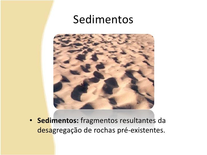 4. 4. Sedimentos<br />Sedimentos: fragmentos resultantes da desagregação de rochas pré-existentes.<br />