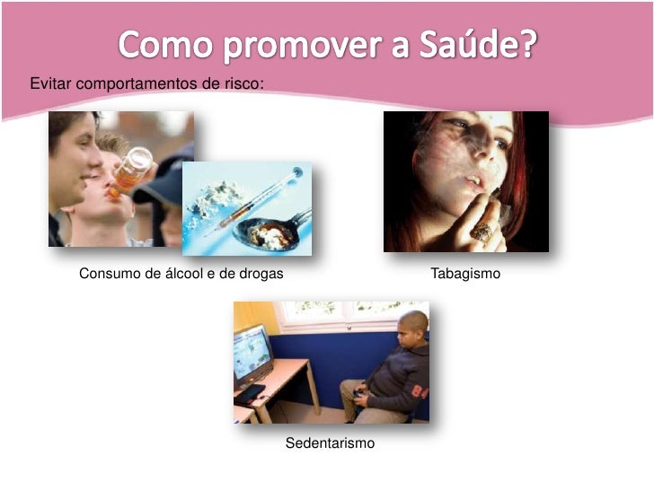 34. 34. Evitar comportamentos de risco:<br />Consumo de álcool e de drogas <br />Tabagismo<br />Sedentarismo<br />Como promover a Saúde?<br />