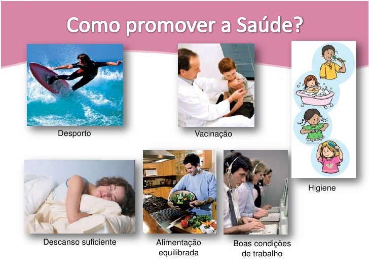 35. 35. Desporto <br />Vacinação<br />Higiene<br />Descanso suficiente <br />Alimentação equilibrada<br />Boas condições de trabalho <br />Como promover a Saúde?<br />