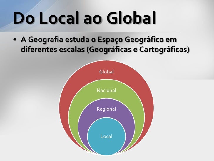 2. 2. Do Local ao Global• A Geografia estuda o Espaço Geográfico em diferentes escalas (Geográficas e Cartográficas) Global Nacional Regional Local