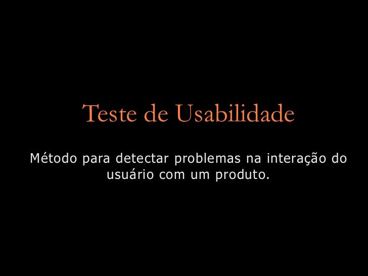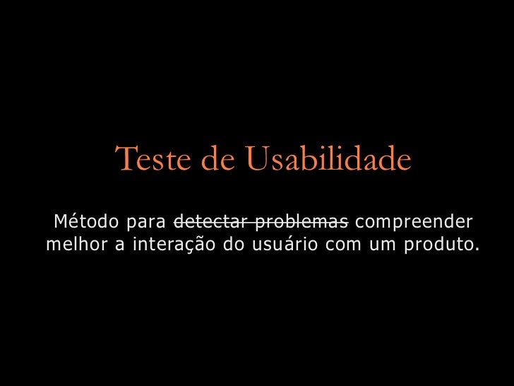 Teste de usabilidade é um método para compreender melhor a interação entre um usuário e um produto. É usado no processo de design, tanto para aperfeiçoar quanto para avaliar uma interface.
