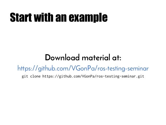 Code Examples and Exercises in: https://github.com/VGonPa/ros-testing-tutorial