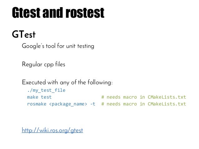 A tutorial about Testing in ROS that I gave to the members of my lab.