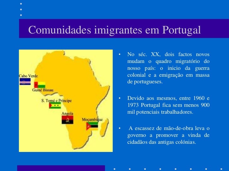 2. 2. Comunidades imigrantes em Portugal • No séc. XX, dois factos novos mudam o quadro migratório do nosso país: o inicio da guerra colonial e a emigração em massa de portugueses. • Devido aos mesmos, entre 1960 e 1973 Portugal fica sem menos 900 mil potenciais trabalhadores. • A escassez de mão-de-obra leva o governo a promover a vinda de cidadãos das antigas colónias.
